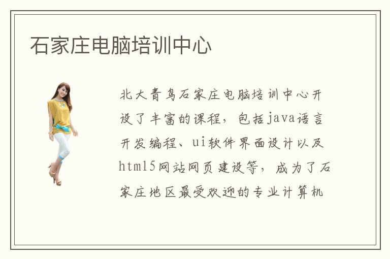 北大青鳥(niǎo)石家莊電腦培訓(xùn)中心開(kāi)設(shè)了豐富的課程,包括java語(yǔ)言開(kāi)發(fā)編程、ui軟件界面設(shè)計(jì)以及html5網(wǎng)站網(wǎng)頁(yè)建設(shè)等,成為了石家莊地區(qū)最受歡迎的專業(yè)計(jì)算機(jī)培訓(xùn)機(jī)構(gòu)。計(jì)算機(jī)專業(yè)的學(xué)習(xí)并不是一朝一夕的,它需要的是學(xué)員縝密的邏輯思維能力、冷靜的頭腦分析能力以及不斷探索新知識(shí)的好奇心等等,總而言之,計(jì)算機(jī)專業(yè)的學(xué)習(xí)起來(lái)需要的是基礎(chǔ)知識(shí)的累積以及堅(jiān)持的耐力。