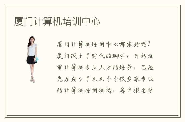 廈門計(jì)算機(jī)培訓(xùn)計(jì)算機(jī)培訓(xùn)中心哪家好呢?廈門跟上了時(shí)代的腳步,開始注重計(jì)算機(jī)專業(yè)人才的培養(yǎng),已經(jīng)先后成立了大大小小很多家專業(yè)的計(jì)算機(jī)培訓(xùn)機(jī)構(gòu),每年報(bào)名學(xué)習(xí)計(jì)算機(jī)專業(yè)的學(xué)生也是數(shù)不勝數(shù)。然而不同的培訓(xùn)機(jī)構(gòu)有不同的教學(xué)方式,不同的教學(xué)方式?jīng)Q定了不同的學(xué)習(xí)效果,大家應(yīng)該要認(rèn)清自身的基礎(chǔ),謹(jǐn)慎挑選合適的培訓(xùn)機(jī)構(gòu),培訓(xùn)機(jī)構(gòu)的排行榜就是很好的一個(gè)參考數(shù)據(jù)。