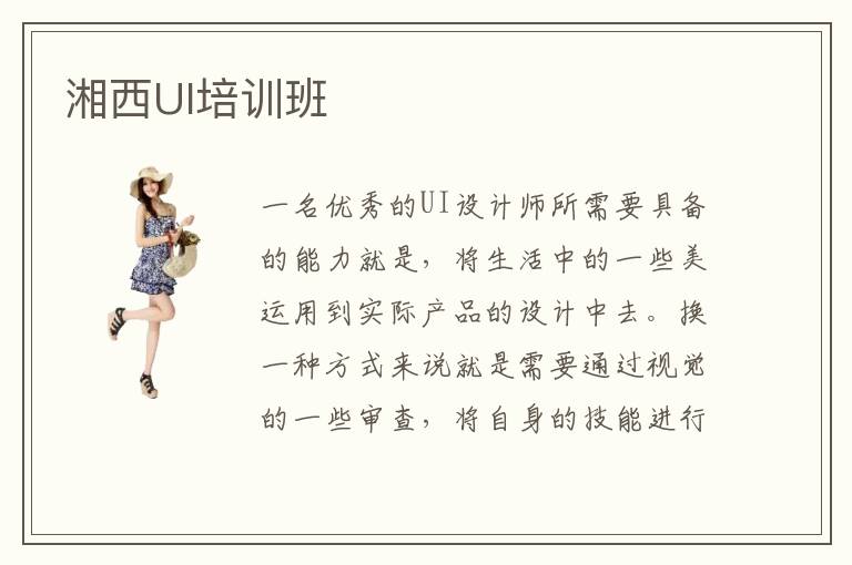湘西市位于我國的湘西省,湘西省可是出了名的“高教育”省份,全國教育水平較高的城市大多都集中在湘西省,這樣的環(huán)境氛圍下,湘西自然不能懈怠“教育”方面的問題,因此開始重視起來對于目前大熱的UI設(shè)計專業(yè)技術(shù)型人才的培養(yǎng)。湘西UI培訓班哪家比較靠譜呢?要想知道哪家UI培訓班靠譜,還是得要自己去實地學校進行考察,要分析各大學校的綜合實力。