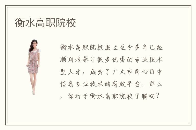 衡水高職院校成立至今多年已經(jīng)順利培養(yǎng)了很多優(yōu)秀的專業(yè)技術(shù)型人才,成為了廣大市民心目中信息專業(yè)技術(shù)的有效平臺(tái)。那么,你對(duì)于衡水高職院校了解嗎?你知道衡水高職院校主要開(kāi)設(shè)了哪些熱門專業(yè)嗎?現(xiàn)如今是一個(gè)信息化發(fā)展的社會(huì),因此計(jì)算機(jī)相關(guān)專業(yè)技術(shù)型人才對(duì)于各大企業(yè)來(lái)說(shuō)是必不可少的,計(jì)算機(jī)相關(guān)專業(yè)的學(xué)習(xí)是一種熱潮,衡水高職院校的熱門專業(yè)自然也是與計(jì)算機(jī)專業(yè)相關(guān)的。