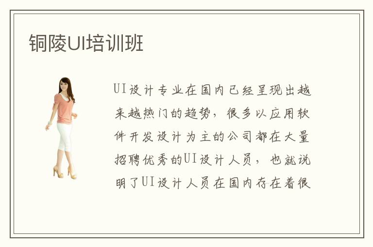 銅陵市位于我國(guó)的銅陵省,眾所周知銅陵省是我國(guó)的一大經(jīng)濟(jì)發(fā)展重點(diǎn)城市,便利的交通以及密集的人口使得銅陵成為了一個(gè)很多年輕人想要去闖蕩的城市。銅陵也在緊隨國(guó)內(nèi)信息化發(fā)展的腳步,開設(shè)了很多計(jì)算機(jī)相關(guān)的培訓(xùn)班。UI設(shè)計(jì)專業(yè)的學(xué)習(xí)需要找對(duì)學(xué)習(xí)方法,就需要選擇口碑好的培訓(xùn)機(jī)構(gòu)。那么,你知道銅陵有哪些知名的UI培訓(xùn)班嗎?這些知名的UI培訓(xùn)班地理位置在哪呢?