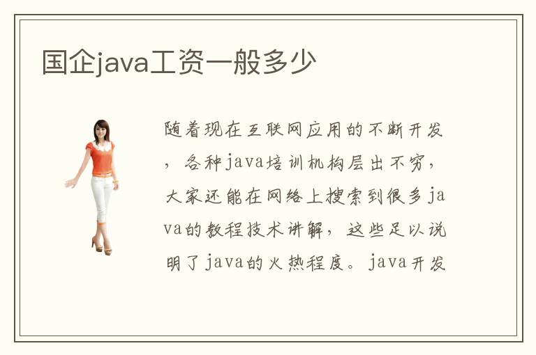隨著現(xiàn)在互聯(lián)網(wǎng)應(yīng)用的不斷開發(fā),各種java培訓(xùn)機(jī)構(gòu)層出不窮,大家還能在網(wǎng)絡(luò)上搜索到很多java的教程技術(shù)講解,這些足以說明了java的火熱程度。java開發(fā)設(shè)計(jì)工程師是目前最高薪的職業(yè)之一,那么,國企java程序員的工資一般多少呢?企業(yè)主要看中的是你的能力與人品,能力越高自然薪資待遇越好,當(dāng)然能力的提升也離不開各種經(jīng)驗(yàn)的挖掘,學(xué)習(xí)java還得堅(jiān)持啊。