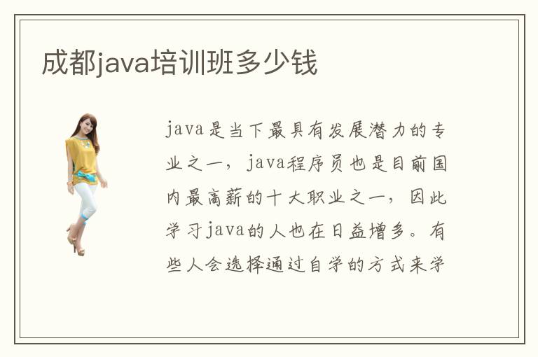 java專業(yè)的學(xué)習(xí)方式一般有兩種,一種是通過(guò)java相關(guān)圖書資料以及網(wǎng)絡(luò)上java相關(guān)視頻教程的自學(xué)方式,還有一種就是進(jìn)入專業(yè)靠譜的java培訓(xùn)機(jī)構(gòu)學(xué)習(xí)。自學(xué)的優(yōu)勢(shì)在于,需要的資金成本很少,但是需要花費(fèi)的時(shí)間卻很長(zhǎng),幾個(gè)月、幾年甚至幾十年都沒(méi)有完全掌握java技能的人不在少數(shù)。而專業(yè)的培訓(xùn)班就避免了這些問(wèn)題,那么,成都java培訓(xùn)班都學(xué)費(fèi)是多少錢呢?
