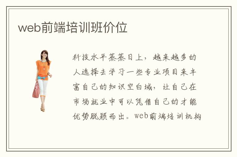 科學技術(shù)水平正在迅猛發(fā)展,面對嚴峻多變的就業(yè)市場,我們就需要不斷拓展自己的領(lǐng)域,多涉及其他方面的項目,在增長自己見識的時候可以提高競爭力水平。web前端設(shè)計是一項受青年人歡迎的職業(yè)。web前端培訓班可以教會我們新鮮的知識,讓我們學會靈活運用所學。優(yōu)秀的web前端設(shè)計開發(fā)培訓有哪些?如何找到性價比高的web前端設(shè)計培訓機構(gòu)?