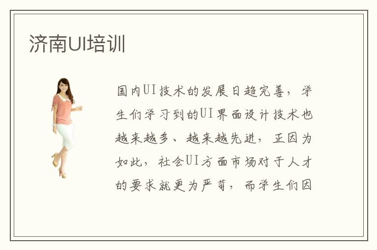 國(guó)內(nèi)UI技術(shù)的發(fā)展日趨完善,學(xué)生們學(xué)習(xí)到的UI界面設(shè)計(jì)技術(shù)也越來(lái)越多、越來(lái)越先進(jìn),正因?yàn)槿绱?,社?huì)UI方面市場(chǎng)對(duì)于人才的要求就更為嚴(yán)苛,而學(xué)生們因此需要不斷地磨練、學(xué)習(xí)以提高自身具備的UI技術(shù)水平。這就是一個(gè)良性學(xué)習(xí)循環(huán)。濟(jì)南UI培訓(xùn)有高度集中的培訓(xùn)課程,內(nèi)容豐富,那么濟(jì)南UI設(shè)計(jì)培訓(xùn)機(jī)構(gòu)靠譜嗎?濟(jì)南地區(qū)UI界面交互設(shè)計(jì)值得學(xué)生們信賴嗎?