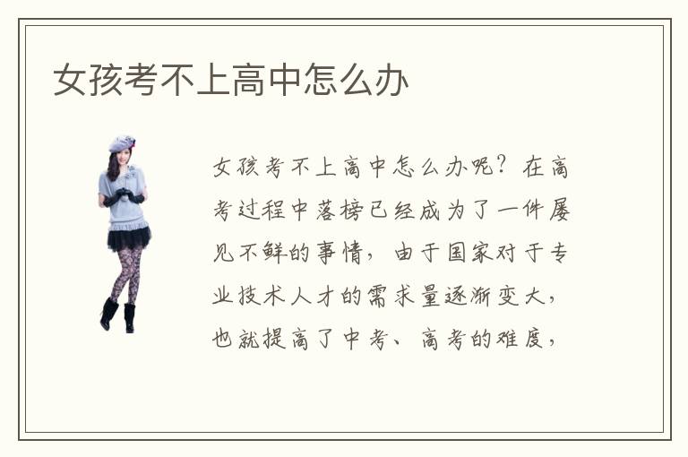 女孩考不上高中考不上高中怎么辦呢?在高考過程中落榜已經(jīng)成為了一件屢見不鮮的事情,由于國家對于專業(yè)技術(shù)人才的需求量逐漸變大,也就提高了中考、高考的難度,因此每年都存在很多在中考、高考中落榜的同學(xué)。在中考落榜的人群中,男生的比例是小于女生比例的,那么女孩考不上高中怎么辦呢?女生在設(shè)計(jì)方面是具有先天優(yōu)勢的,因此可以選擇學(xué)習(xí)一些當(dāng)下比較熱門的與設(shè)計(jì)相關(guān)的專業(yè)學(xué)習(xí)。