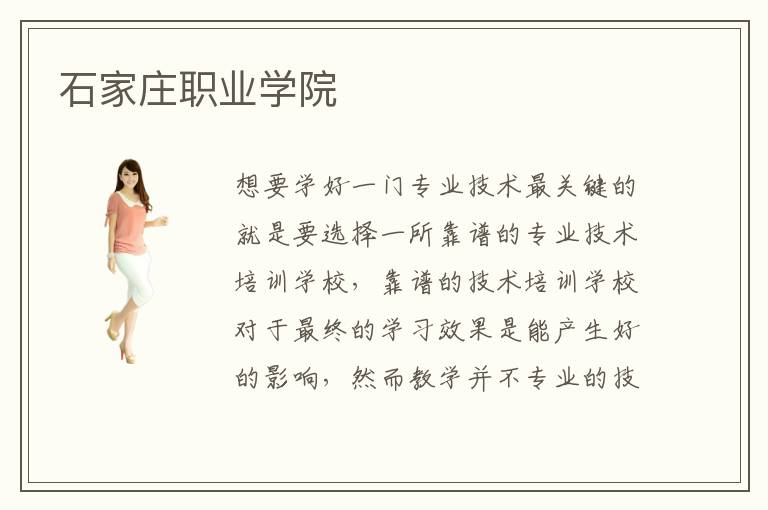 想要學(xué)好一門專業(yè)技術(shù)最關(guān)鍵的就是要選擇一所靠譜的專業(yè)技術(shù)培訓(xùn)學(xué)校,靠譜的技術(shù)培訓(xùn)學(xué)校對(duì)于最終的學(xué)習(xí)效果是能產(chǎn)生好的影響,然而教學(xué)并不專業(yè)的技術(shù)培訓(xùn)學(xué)校則會(huì)對(duì)學(xué)習(xí)效果產(chǎn)生不好的影響,因此對(duì)于專業(yè)技術(shù)培訓(xùn)學(xué)校的選擇是很重要的一件事。那么,石家莊職業(yè)學(xué)院是不是一所靠譜的專業(yè)技術(shù)培訓(xùn)機(jī)構(gòu)呢?石家莊職業(yè)學(xué)院的教學(xué)團(tuán)隊(duì)專業(yè)嗎?石家莊職業(yè)學(xué)院的教學(xué)水平高嗎?
