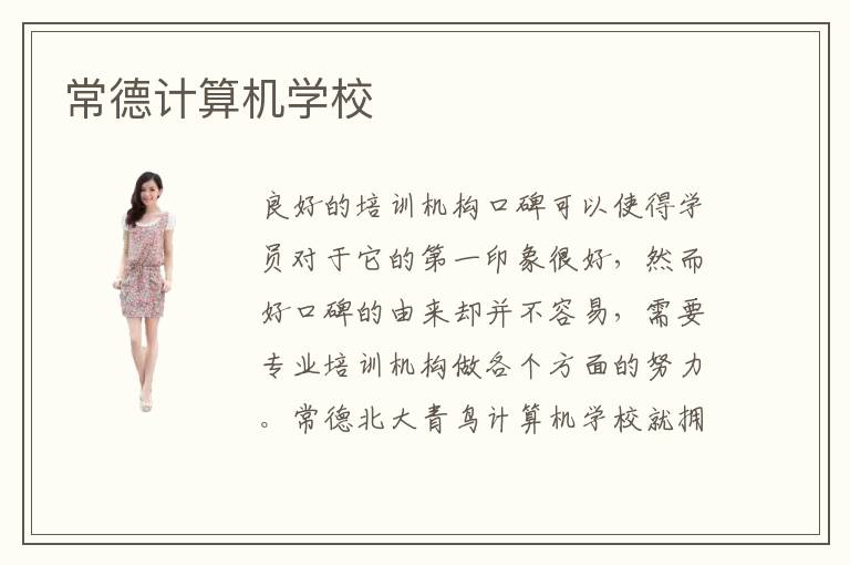 對(duì)于常德計(jì)算機(jī)學(xué)校你了解多少呢?你知道常德計(jì)算機(jī)學(xué)校主要推出哪些專業(yè)課程嗎?對(duì)于想要學(xué)習(xí)計(jì)算機(jī)相關(guān)專業(yè),想要進(jìn)入常德計(jì)算機(jī)學(xué)校學(xué)習(xí)的人來說,這些基礎(chǔ)問題是必須要了解的。那么,怎樣才能了解到常德計(jì)算機(jī)學(xué)校的相關(guān)信息呢?同學(xué)們不要著急,大家可以去各大瀏覽器上搜索“常德計(jì)算機(jī)學(xué)校”,進(jìn)入常德計(jì)算機(jī)學(xué)校官方網(wǎng)站上查閱相關(guān)信息,是比較有效的方式。