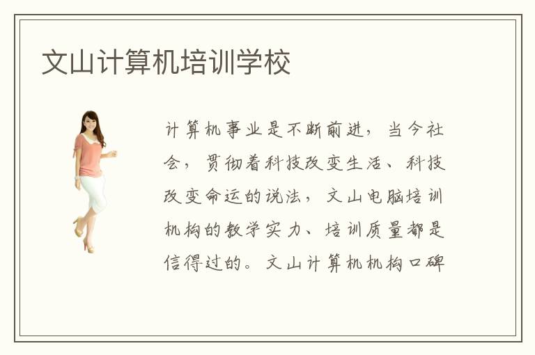 文山計(jì)算機(jī)學(xué)校在哪里?文山計(jì)算機(jī)電腦培訓(xùn)學(xué)校哪家強(qiáng)?學(xué)生選擇計(jì)算機(jī)培訓(xùn)機(jī)構(gòu)的時(shí)候要注意兩點(diǎn),其一,自己感興趣的專業(yè)是否是該培訓(xùn)機(jī)構(gòu)的重點(diǎn)教學(xué)課程,其二,想要選擇的培訓(xùn)機(jī)構(gòu)是不是專業(yè)的計(jì)算機(jī)培訓(xùn)機(jī)構(gòu)。文山電腦培訓(xùn)班訓(xùn)練效果展示怎么樣?文山電腦培訓(xùn)學(xué)校官方介紹可以在文山計(jì)算機(jī)培訓(xùn)學(xué)校的官網(wǎng)上看到,其中詳細(xì)介紹了文山電腦培訓(xùn)班。
