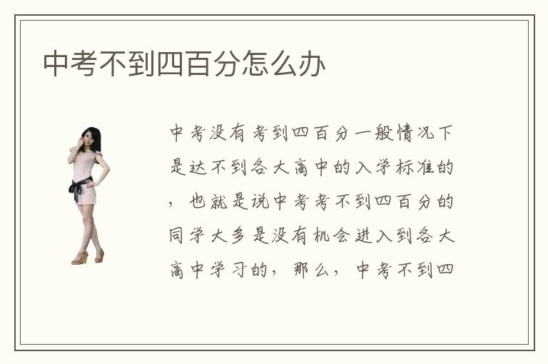 中考沒有考到四百分一般情況下是達不到各大高中的入學標準的,也就是說中考考不到四百分的同學大多是沒有機會進入到各大高中學習的,那么,中考不到四百分怎么辦呢?中考不到四百分的同學可以選擇現在比較熱門的各大中專技術培訓學校進行學習,選擇一門適合自己學習并且具有廣闊就業(yè)前景的專業(yè),才能在今后的就業(yè)過程中更加的順利,才能保證自己在未來的就業(yè)過程中找到靠譜的工作。
