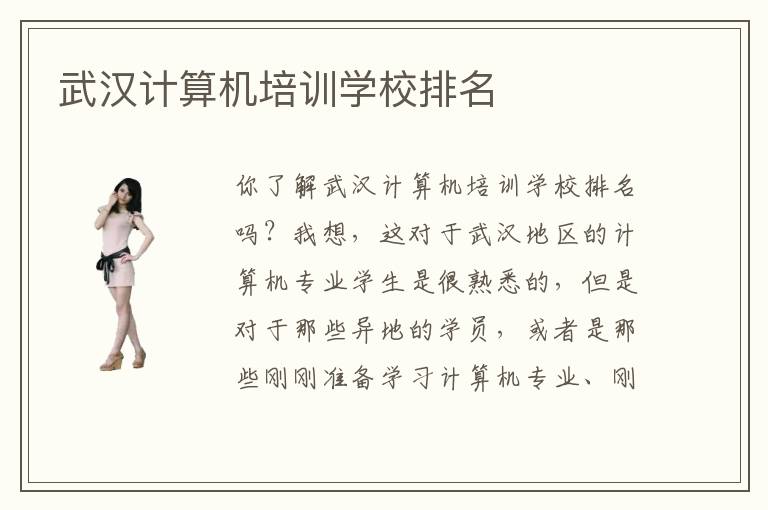 你了解武漢計(jì)算機(jī)培訓(xùn)計(jì)算機(jī)培訓(xùn)學(xué)校排名嗎?我想,這對(duì)于武漢地區(qū)的計(jì)算機(jī)專業(yè)學(xué)生是很熟悉的,但是對(duì)于那些異地的學(xué)員,或者是那些剛剛準(zhǔn)備學(xué)習(xí)計(jì)算機(jī)專業(yè)、剛剛準(zhǔn)備加入it這一行業(yè)的學(xué)員,卻并不是很熟悉。武漢計(jì)算機(jī)培訓(xùn)學(xué)校排名,是武漢地區(qū)想要學(xué)習(xí)計(jì)算機(jī)相關(guān)專業(yè)的學(xué)員,選擇培訓(xùn)學(xué)校時(shí)的一個(gè)重要參考依據(jù),下面我就來告訴大家武漢計(jì)算機(jī)培訓(xùn)學(xué)校的排名先后吧。