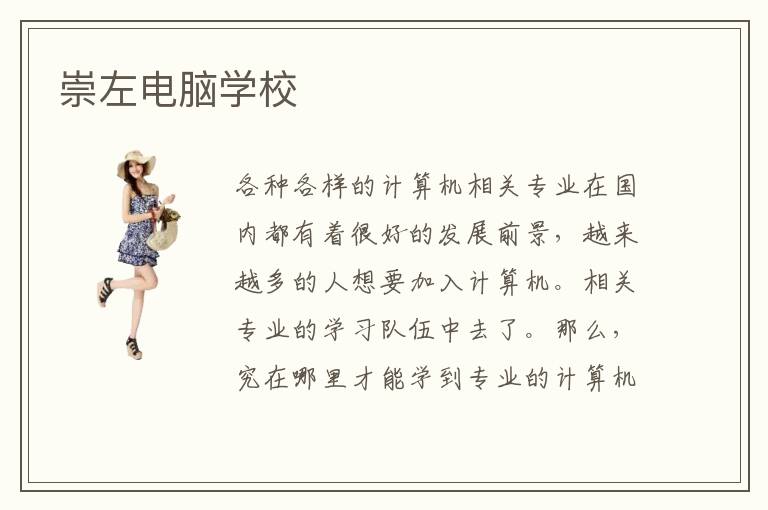 各種各樣的計算機(jī)相關(guān)專業(yè)在國內(nèi)都有著很好的發(fā)展前景,越來越多的人想要加入計算機(jī)。相關(guān)專業(yè)的學(xué)習(xí)隊(duì)伍中去了。那么,究在哪里才能學(xué)到專業(yè)的計算機(jī)相關(guān)專業(yè)技術(shù)呢?哪里的計算機(jī)專業(yè)教學(xué)水平比較高呢?崇左電腦學(xué)校開設(shè)了豐富的計算機(jī)課程,大家可以根據(jù)自己的興趣愛好以及自身實(shí)際情況進(jìn)行專業(yè)的選擇,不同的專業(yè)崇左電腦學(xué)校會安排不同的專業(yè)課程,因此崇左電腦學(xué)校算是比較靠譜的計算機(jī)培訓(xùn)學(xué)校了。