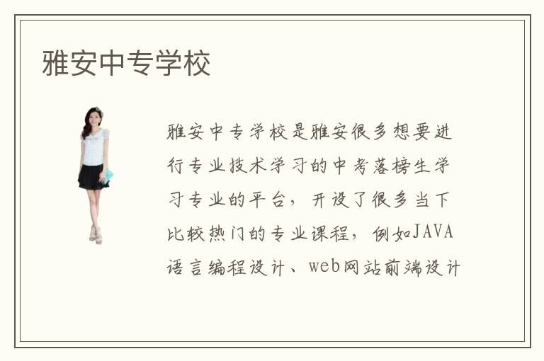 雅安中專學(xué)校開設(shè)了很多專業(yè)課程,當(dāng)下一些熱門專業(yè)基本都可以在雅安中專學(xué)校的課程培訓(xùn)計(jì)劃中看到。然而并不是所有的家長都會(huì)放心讓孩子進(jìn)入中專技術(shù)培訓(xùn)學(xué)校學(xué)習(xí)的,雅安中專學(xué)校卻成為了一個(gè)例外。由于雅安中專學(xué)校的高質(zhì)量專業(yè)教學(xué),使得學(xué)員們?cè)谘虐仓袑W(xué)??梢韵硎艿阶顚I(yè)的課程培訓(xùn),因此雅安中專學(xué)校是大家進(jìn)行專業(yè)課程學(xué)習(xí)的好平臺(tái),也順利獲得了大家的信任。