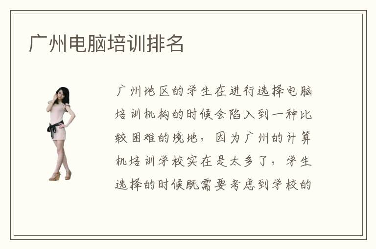廣州地區(qū)的學(xué)生在進(jìn)行選擇電腦培訓(xùn)機(jī)構(gòu)的時候會陷入到一種比較困難的境地,因為廣州的計算機(jī)培訓(xùn)學(xué)校實在是太多了,學(xué)生選擇的時候既需要考慮到學(xué)校的教學(xué)水平也需要了解該電腦培訓(xùn)機(jī)構(gòu)的口碑情況,性價比等等。參考廣州電腦培訓(xùn)排名并且結(jié)合廣州電腦培訓(xùn)學(xué)習(xí)各機(jī)構(gòu)的費用,我們可以選擇到自己信任的心儀的培訓(xùn)學(xué)校。那么,廣州有哪些優(yōu)秀的電腦培訓(xùn)學(xué)校?