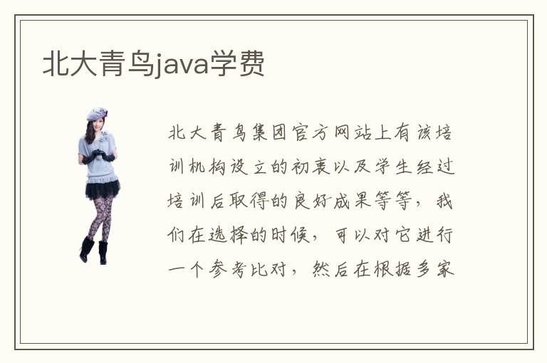 北大青鳥集團官方網(wǎng)站上有該培訓(xùn)機構(gòu)設(shè)立的初衷以及學(xué)生經(jīng)過培訓(xùn)后取得的良好成果等等,我們在選擇的時候,可以對它進行一個參考比對,然后在根據(jù)多家培訓(xùn)機構(gòu)的收費情況對比北大青鳥java學(xué)費,判斷選擇出性價比最高的java設(shè)計培訓(xùn)學(xué)校??梢詤⒖急贝笄帏Bjava學(xué)費一覽表。請多方面關(guān)注北大青鳥java學(xué)費清單,讓自己可以及時汲取了解到培訓(xùn)費用的變動情況。