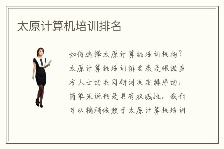 如何選擇太原計算機培訓計算機培訓機構(gòu)?太原計算機培訓排名表是根據(jù)多方人士的共同研討決定排序的,簡單來說也是具有權(quán)威性。我們可以稍稍依賴于太原計算機培訓排名進行培訓機構(gòu)的篩選。當然,另一程度,我們也需要結(jié)合自己的實際情況,進行太原計算機培訓學校的選擇。太原地區(qū)計算機培訓學??诒容^如何進行?需要綜合太原計算機培訓學校的教學情況和辦學色彩等各項指標。