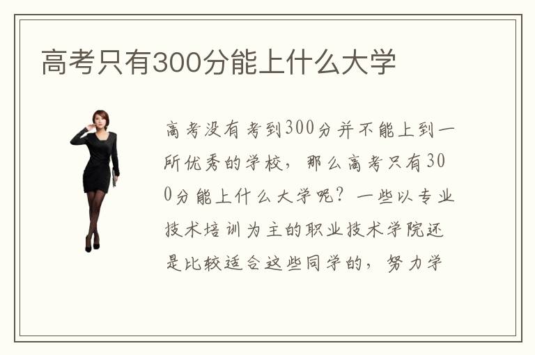 高考沒有考到300分并不能上到一所優(yōu)秀的學校,那么高考只有300分能上什么大學呢?一些以專業(yè)技術培訓為主的職業(yè)技術學院還是比較適合這些同學的,努力學好專業(yè)技術對于未來就業(yè)是很有幫助的。職業(yè)技術學院的教學培訓目的很明確,成立的主要目的就是為了培養(yǎng)更多強專業(yè)、高技術并且經(jīng)驗豐富的技術人才,充分保障了在校學員的就業(yè)安全,同時也為國內(nèi)各個地區(qū)的經(jīng)濟水平發(fā)展能力做出了很大的貢獻。