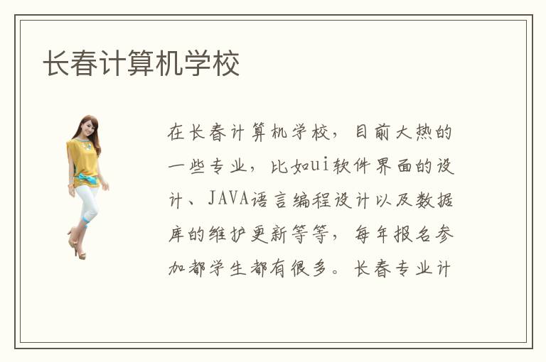 長春是我國的一個(gè)注重科技發(fā)展的重要經(jīng)濟(jì)開發(fā)城市,為了更好的幫助學(xué)生選擇靠譜的專業(yè)計(jì)算機(jī)培訓(xùn)學(xué)校,特地舉行了“長春計(jì)算機(jī)學(xué)校排名”的活動(dòng)。了解一下長春計(jì)算機(jī)培訓(xùn)計(jì)算機(jī)培訓(xùn)機(jī)構(gòu)排名,對(duì)于很多剛剛想要開始學(xué)習(xí)計(jì)算機(jī)專業(yè),但是卻苦于不知道哪家專業(yè)的計(jì)算機(jī)培訓(xùn)機(jī)構(gòu)靠譜的學(xué)生是很有幫助的。是根據(jù)多方面的因素反復(fù)對(duì)比、不斷比較而得出的結(jié)果。