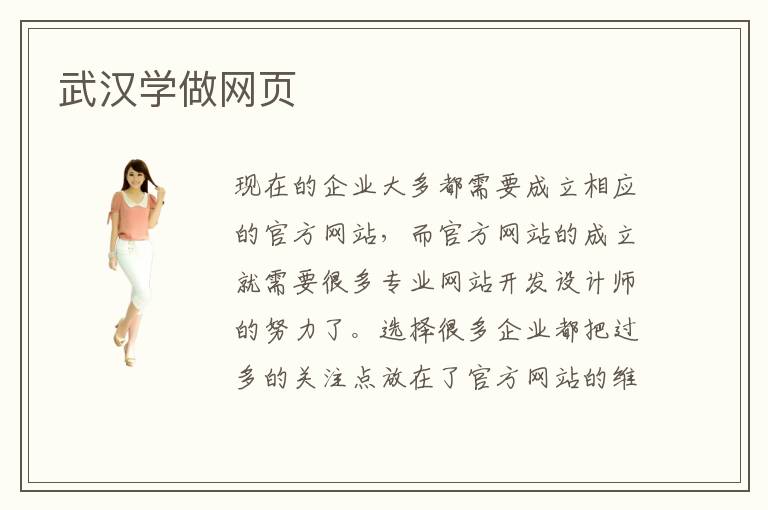 現(xiàn)在的企業(yè)大多都需要成立相應(yīng)的官方網(wǎng)站,而官方網(wǎng)站的成立就需要很多專業(yè)網(wǎng)站開(kāi)發(fā)設(shè)計(jì)師的努力了。選擇很多企業(yè)都把過(guò)多的關(guān)注點(diǎn)放在了官方網(wǎng)站的維護(hù)更新方面,對(duì)于網(wǎng)頁(yè)開(kāi)發(fā)設(shè)計(jì)專業(yè)人才的招聘也是給予了豐厚的待遇。怎樣才能學(xué)好網(wǎng)頁(yè)開(kāi)發(fā)設(shè)計(jì)專業(yè)呢?武漢學(xué)做網(wǎng)頁(yè)究竟哪些專業(yè)培訓(xùn)機(jī)構(gòu)比較可靠呢?大家對(duì)于武漢網(wǎng)頁(yè)開(kāi)發(fā)設(shè)計(jì)培訓(xùn)學(xué)校的選擇一定要考慮多方面的因素。