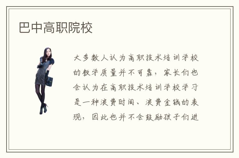 大多數(shù)人認為高職技術(shù)培訓學校的教學質(zhì)量并不可靠,家長們也會認為在高職技術(shù)培訓學校學習是一種浪費時間、浪費金錢的表現(xiàn),因此也并不會鼓勵孩子們進入各大高職技術(shù)培訓學校進行學習,然而也并不是所有的高職技術(shù)培訓學校都不可靠。那么,你知道大家對于巴中高職院校的評價是怎樣的嗎?根據(jù)對于巴中高職院校的了解程度,大家對于巴中高職院校的評價也是不一樣的。