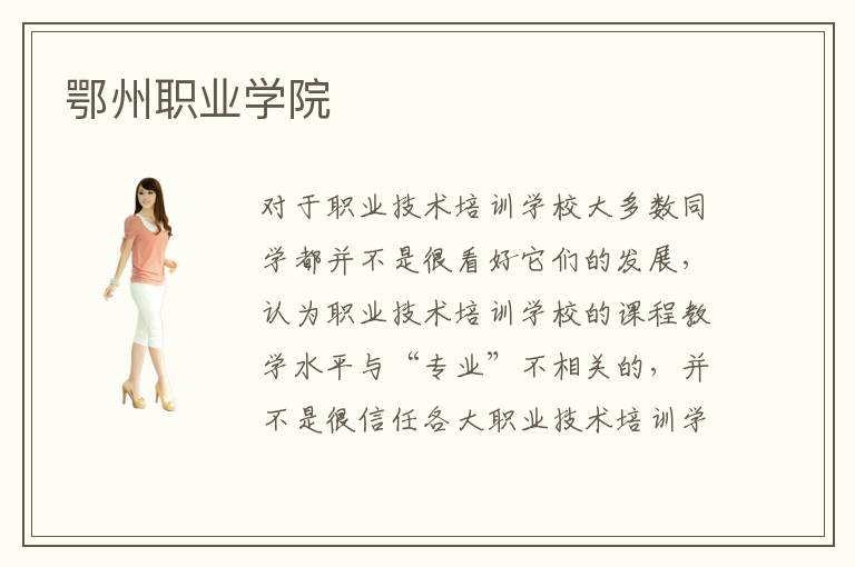 對于職業(yè)技術培訓學校大多數(shù)同學都并不是很看好它們的發(fā)展,認為職業(yè)技術培訓學校的課程教學水平與“專業(yè)”不相關的,并不是很信任各大職業(yè)技術培訓學校的教學質量。一般情況下,大家對于職業(yè)技術培訓學校的評價都不是很好,那么同學們對于鄂州職業(yè)學院的評價是怎樣的呢?鄂州職業(yè)學院在廣大市民心目中是不是一所比較靠譜的專業(yè)技術培訓學校呢?