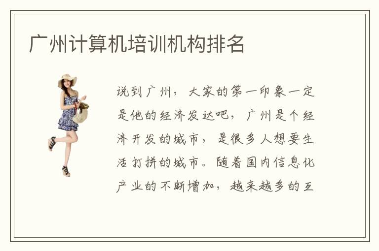 說到廣州,大家的第一印象一定是他的經(jīng)濟發(fā)達吧,廣州是個經(jīng)濟開發(fā)的城市,是很多人想要生活打拼的城市。隨著國內(nèi)信息化產(chǎn)業(yè)的不斷增加,越來越多的互聯(lián)網(wǎng)機構(gòu)開始注重計算機專業(yè)人才的培養(yǎng)。那么,你知道廣州計算機培訓(xùn)計算機培訓(xùn)機構(gòu)排名嗎?近年來,各大網(wǎng)站開始舉辦了“廣州計算機培訓(xùn)機構(gòu)排名”投票活動,以此來為幫助更多想要學(xué)習(xí)it技術(shù),卻苦于選擇的學(xué)生提供一個參考。