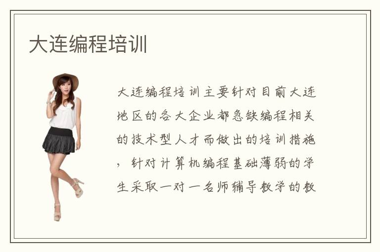 大連編程培訓(xùn)主要針對(duì)目前大連地區(qū)的各大企業(yè)都急缺編程相關(guān)的技術(shù)型人才而做出的培訓(xùn)措施,針對(duì)計(jì)算機(jī)編程基礎(chǔ)薄弱的學(xué)生采取一對(duì)一名師輔導(dǎo)教學(xué)的教學(xué)方式,打造小班教學(xué)培訓(xùn)模式,讓學(xué)生可以在濃厚的學(xué)習(xí)環(huán)境中更加高效的學(xué)好編程專業(yè)。大連編程培訓(xùn)幫助了越來越多的學(xué)生完成了成為優(yōu)秀編程設(shè)計(jì)工程師的夢想,是各位想要學(xué)習(xí)編程專業(yè)的一個(gè)好平臺(tái)。