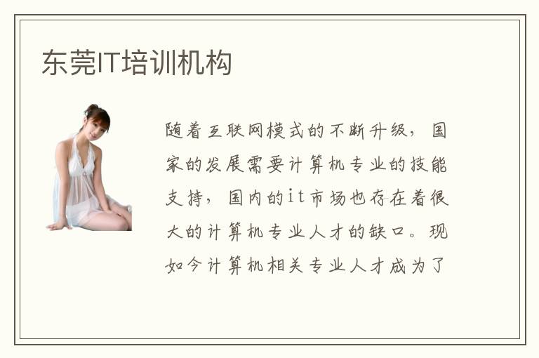 隨著互聯(lián)網(wǎng)模式的不斷升級(jí),國(guó)家的發(fā)展需要計(jì)算機(jī)專業(yè)的技能支持,國(guó)內(nèi)的it市場(chǎng)也存在著很大的計(jì)算機(jī)專業(yè)人才的缺口?,F(xiàn)如今計(jì)算機(jī)相關(guān)專業(yè)人才成為了當(dāng)下炙手可熱的職業(yè),各大企業(yè)都在高薪招聘計(jì)算機(jī)相關(guān)專業(yè)的優(yōu)秀人員,為了公司的開(kāi)發(fā)運(yùn)作發(fā)展,it人員的工作顯得尤為重要。東莞IT培訓(xùn)機(jī)構(gòu)就是一個(gè)東莞地區(qū)學(xué)習(xí)計(jì)算機(jī)專業(yè)的好平臺(tái)。
