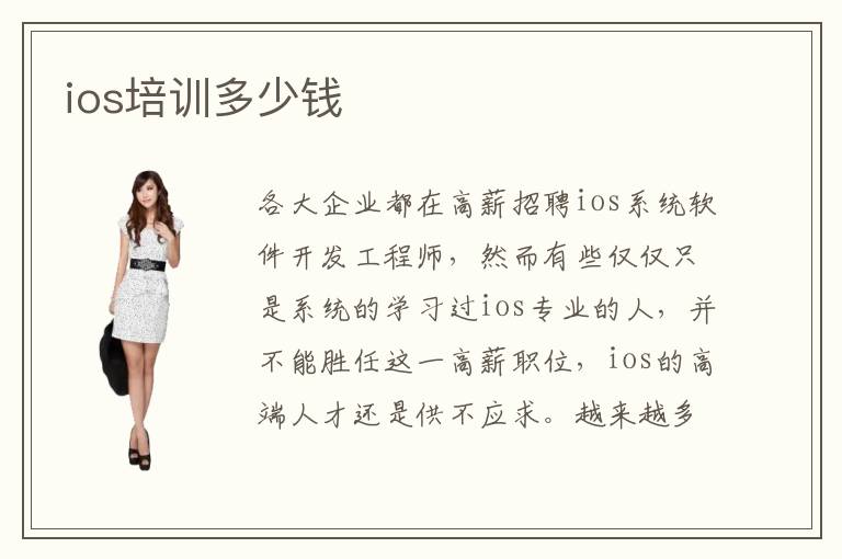 各大企業(yè)都在高薪招聘ios系統(tǒng)軟件開(kāi)發(fā)工程師,然而有些僅僅只是系統(tǒng)的學(xué)習(xí)過(guò)ios專業(yè)的人,并不能勝任這一高薪職位,ios的高端人才還是供不應(yīng)求。越來(lái)越多的人想要去專業(yè)的ios培訓(xùn)機(jī)構(gòu)進(jìn)行學(xué)習(xí),不管是零基礎(chǔ)的學(xué)員還是學(xué)過(guò)ios想來(lái)提高專業(yè)技能的學(xué)員,大家都能夠通過(guò)培訓(xùn)機(jī)構(gòu)這四個(gè)月左右的時(shí)間,學(xué)好ios,獲得更多的關(guān)于ios的經(jīng)驗(yàn)。那么,ios培訓(xùn)多少錢呢?
