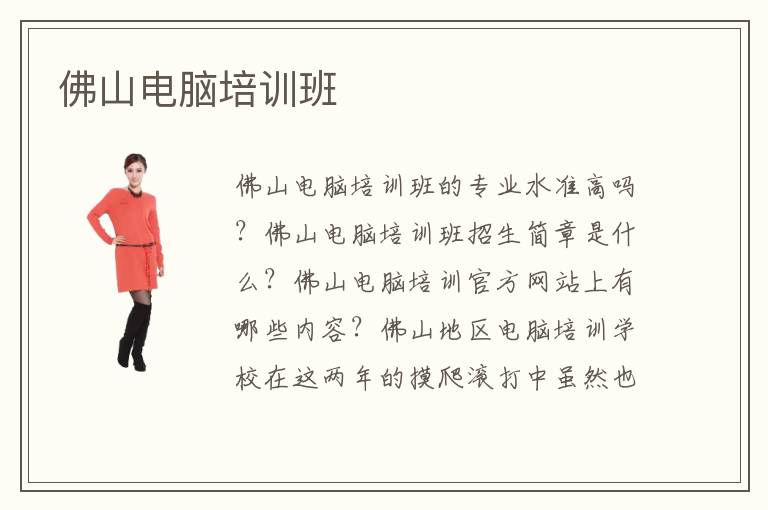 佛山電腦培訓(xùn)班的專(zhuān)業(yè)水準(zhǔn)高嗎?佛山電腦培訓(xùn)班招生簡(jiǎn)章是什么?佛山電腦培訓(xùn)官方網(wǎng)站上有哪些內(nèi)容?佛山地區(qū)電腦培訓(xùn)學(xué)校在這兩年的摸爬滾打中雖然也有碰壁,但總體上得到了較好的發(fā)展。佛山電腦培訓(xùn)官方網(wǎng)站上講述了計(jì)算機(jī)培訓(xùn)機(jī)構(gòu)的創(chuàng)立初衷,介紹了學(xué)校的專(zhuān)業(yè)特色,展示了一部分的教育教學(xué)成果。通過(guò)官方網(wǎng)站的瀏覽,我們能更清晰地找出培訓(xùn)學(xué)校的亮點(diǎn),更好地選擇。