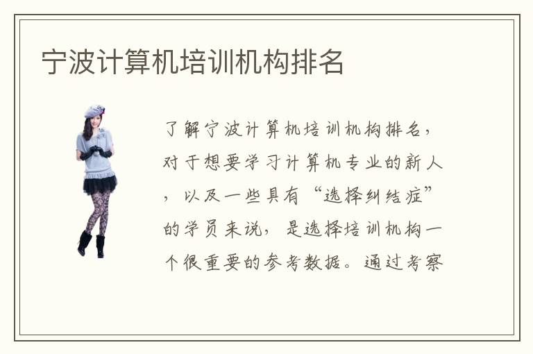 了解寧波計(jì)算機(jī)培訓(xùn)機(jī)構(gòu)排名,對(duì)于想要學(xué)習(xí)計(jì)算機(jī)專業(yè)的新人,以及一些具有“選擇糾結(jié)癥”的學(xué)員來說,是選擇培訓(xùn)機(jī)構(gòu)一個(gè)很重要的參考數(shù)據(jù)。通過考察各個(gè)培訓(xùn)機(jī)構(gòu)的口碑問題、師資力量、教學(xué)環(huán)境等方面,進(jìn)行反復(fù)對(duì)比、篩選,從而得出了計(jì)算機(jī)培訓(xùn)機(jī)構(gòu)排名表。因此,就綜合性質(zhì)而言,排行榜上前幾名的培訓(xùn)機(jī)構(gòu),是很適合廣大學(xué)員接受專業(yè)it教育的學(xué)校。