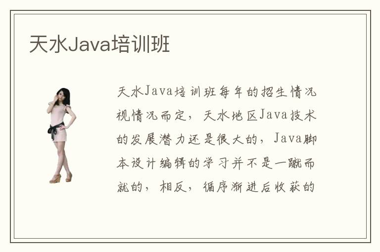 天水Java培訓(xùn)班完全是因為時代的推動作用而產(chǎn)生,互聯(lián)網(wǎng)時代加大了科技與經(jīng)濟(jì)的結(jié)合力度,科技的快速發(fā)展保障了經(jīng)濟(jì)的穩(wěn)定發(fā)展。天水Java開發(fā)工程師薪資待遇好不好?既然Java設(shè)計等計算機(jī)專業(yè)是高新科技產(chǎn)業(yè),那么,需要的人才力量也是高端的,其工資水平也比較高。天水Java培訓(xùn)學(xué)習(xí)費(fèi)用大概要多少錢?天水Java培訓(xùn)機(jī)構(gòu)具體有哪幾家?