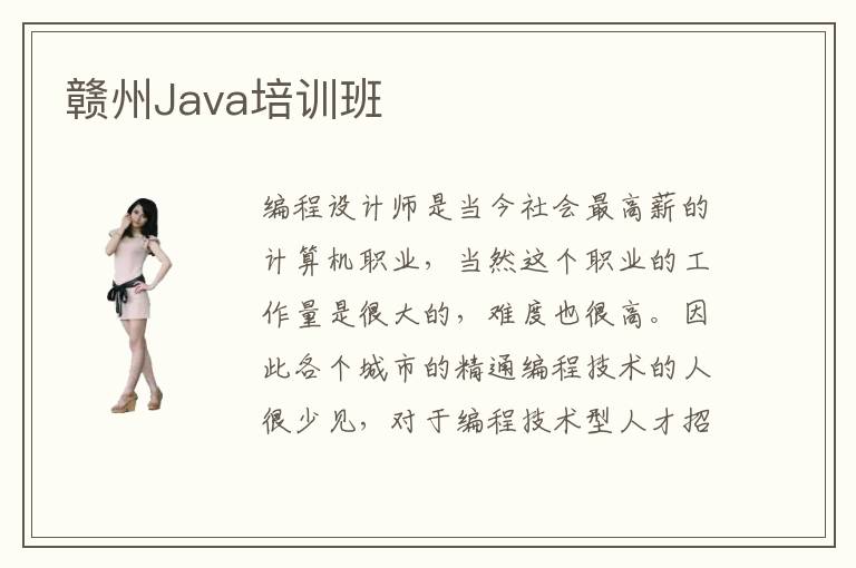 編程設(shè)計(jì)師是當(dāng)今社會(huì)最高薪的計(jì)算機(jī)職業(yè),當(dāng)然這個(gè)職業(yè)的工作量是很大的,難度也很高。因此各個(gè)城市的精通編程技術(shù)的人很少見(jiàn),對(duì)于編程技術(shù)型人才招聘也成了各大企業(yè)的難題。java語(yǔ)言作為編程技術(shù)中運(yùn)用最廣的語(yǔ)言,java語(yǔ)言專業(yè)課程學(xué)習(xí)的人自然不少。那么贛州Java培訓(xùn)班的學(xué)習(xí)難度大嗎?對(duì)于零計(jì)算機(jī)編程基礎(chǔ)的人來(lái)說(shuō),在贛州java培訓(xùn)班學(xué)習(xí)起來(lái)困難嗎?