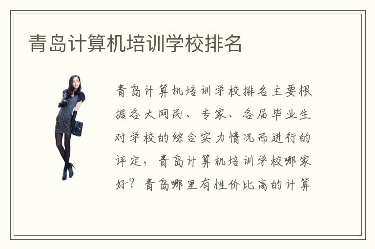 青島計算機培訓學校排名發(fā)布在各大網(wǎng)站上供大家參考選擇,青島電腦培訓以其優(yōu)質(zhì)的服務態(tài)度出名,爭取在有限的教學周期內(nèi),教會學生盡可能多的知識,讓學生可以獲得學業(yè)上的自信心。青島電腦教學宗旨是教育為主、就業(yè)為本,在市場競爭如此嚴峻的時刻,一個崗位甚至就有多人共同參與競爭,而青島電腦培訓學校積極與企業(yè)取得聯(lián)系,保證學生就業(yè)率。