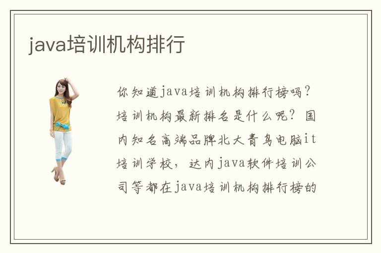 你知道java培訓(xùn)機(jī)構(gòu)排行榜嗎?培訓(xùn)機(jī)構(gòu)最新排名是什么呢?國(guó)內(nèi)知名高端品牌北大青鳥電腦it培訓(xùn)學(xué)校,達(dá)內(nèi)java軟件培訓(xùn)公司等都在java培訓(xùn)機(jī)構(gòu)排行榜的前列。這是為什么呢?這些知名品牌的培訓(xùn)機(jī)構(gòu)都有這樣一些共同點(diǎn),比如說培訓(xùn)機(jī)構(gòu)的授課老師高學(xué)歷,有經(jīng)驗(yàn),夠?qū)I(yè),通過專業(yè)課程的培訓(xùn),嚴(yán)格要求學(xué)生,讓學(xué)生更高效率的學(xué)會(huì)java,學(xué)好java等等。