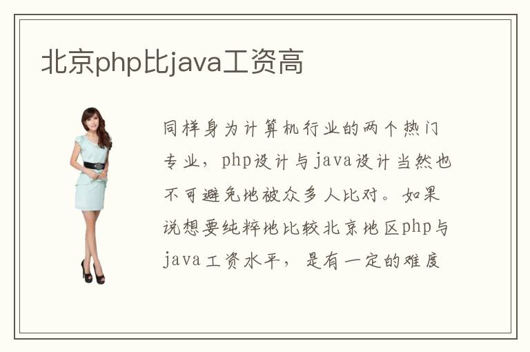 同樣身為計(jì)算機(jī)行業(yè)的兩個(gè)熱門專業(yè),php設(shè)計(jì)與java設(shè)計(jì)當(dāng)然也不可避免地被眾多人比對。如果說想要純粹地比較北京地區(qū)php與java工資水平,是有一定的難度系數(shù)的,這樣容易片面化局限化。一般情況下,北京php的工資會(huì)比java工資高高一些。但是,這只是平均情況,畢竟真實(shí)工作水平取決于個(gè)人的能力水平。北京php與java工資如何進(jìn)行比較?北京php的工資高還是java的工資高?