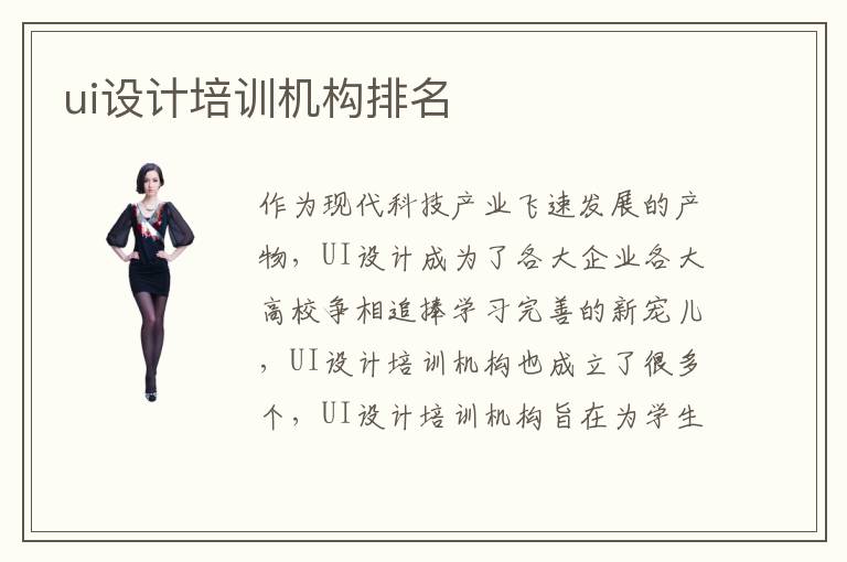 越來越飛速發(fā)展的現(xiàn)代化社會(huì),有更多的人選擇了計(jì)算機(jī)行業(yè),為了不斷地完善發(fā)展自己的就業(yè)市場(chǎng)競(jìng)爭(zhēng)力,不少人愿意花費(fèi)時(shí)間經(jīng)歷和金錢來進(jìn)行UI設(shè)計(jì)培訓(xùn)機(jī)構(gòu)的相關(guān)課程的學(xué)習(xí)。UI設(shè)計(jì)培訓(xùn)機(jī)構(gòu)的學(xué)生可以在進(jìn)行提升專業(yè)水平的同時(shí),也讓自己的審美能力得到了提升。國內(nèi)的UI設(shè)計(jì)培訓(xùn)機(jī)構(gòu)有哪些?ui設(shè)計(jì)培訓(xùn)機(jī)構(gòu)有哪幾家?有哪些ui設(shè)計(jì)培訓(xùn)機(jī)構(gòu)?