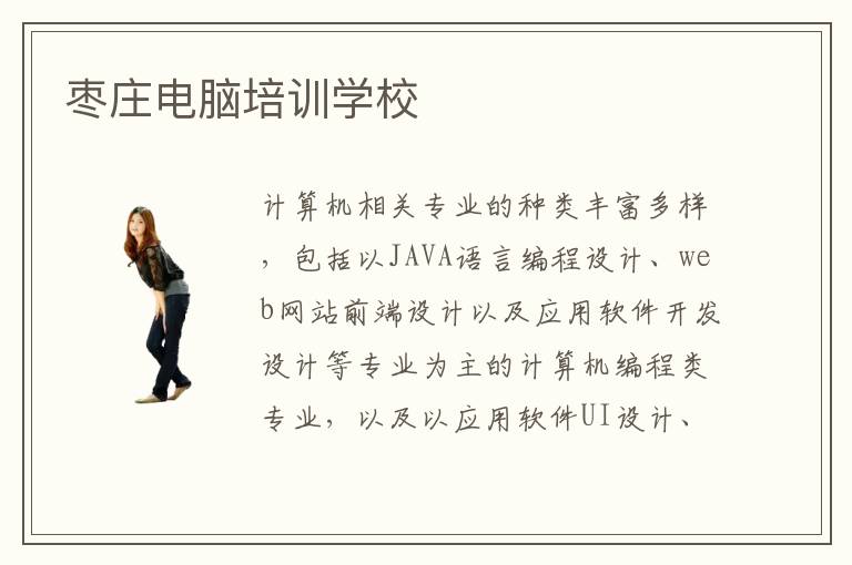 計算機相關(guān)專業(yè)的種類豐富多樣,包括以JAVA語言編程設(shè)計、web網(wǎng)站前端設(shè)計以及應(yīng)用軟件開發(fā)設(shè)計等專業(yè)為主的計算機編程類專業(yè),以及以應(yīng)用軟件UI設(shè)計、html5網(wǎng)頁設(shè)計以及平面設(shè)計等計算機美術(shù)類專業(yè)。計算機專業(yè)的豐富多樣也給想要學(xué)習(xí)計算機相關(guān)專業(yè)的同學(xué)帶來了更多的選擇,然而計算機相關(guān)專業(yè)培訓(xùn)學(xué)校的選擇也是大家在糾結(jié)的,那么棗莊電腦培訓(xùn)學(xué)校哪家靠譜呢?
