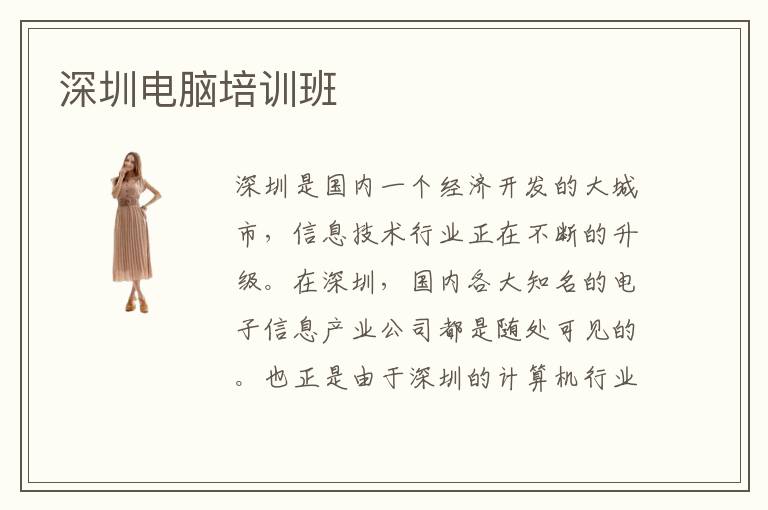 深圳是國內(nèi)一個經(jīng)濟(jì)開發(fā)的大城市,信息技術(shù)行業(yè)正在不斷的升級。在深圳,國內(nèi)各大知名的電子信息產(chǎn)業(yè)公司都是隨處可見的。也正是由于深圳的計算機(jī)行業(yè)的大好發(fā)展趨勢,進(jìn)一步加速了深圳走向經(jīng)濟(jì)化大城市的行列中去。it技術(shù)掌握的精髓,就在于充分理解,只有帶著清晰的頭腦做出冷靜的分析,真正掌握計算機(jī)技術(shù),學(xué)會舉一反三才是最有效的,深圳電腦培訓(xùn)機(jī)構(gòu)是很多人的選擇。