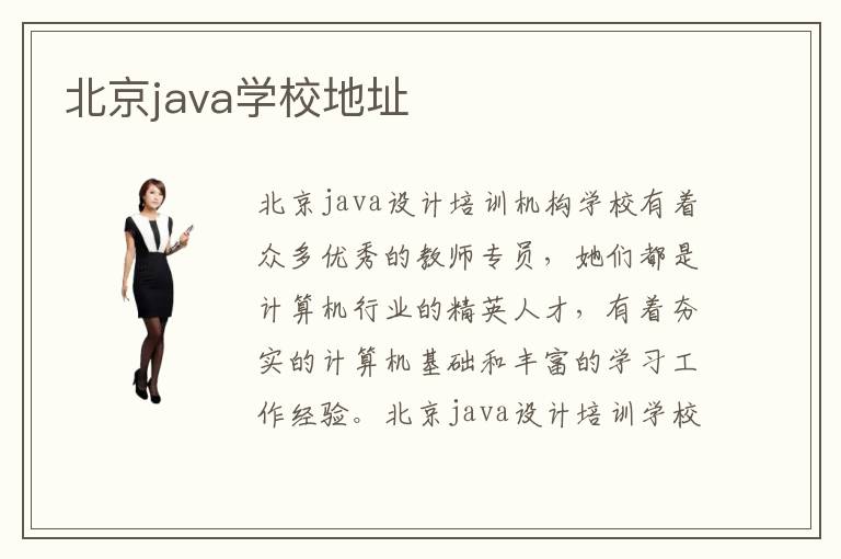 北京java設(shè)計(jì)培訓(xùn)機(jī)構(gòu)學(xué)校有著眾多優(yōu)秀的教師專員,她們都是計(jì)算機(jī)行業(yè)的精英人才,有著夯實(shí)的計(jì)算機(jī)基礎(chǔ)和豐富的學(xué)習(xí)工作經(jīng)驗(yàn)。北京java設(shè)計(jì)培訓(xùn)學(xué)校在專業(yè)團(tuán)隊(duì)的帶領(lǐng)下逐漸走上正軌,被越來(lái)越多的人熟悉了解。北京java培訓(xùn)機(jī)構(gòu)的口碑情況也是蒸蒸日上,北京java學(xué)校地址是哪里?北京java培訓(xùn)學(xué)校在哪兒呢?北京哪里有java設(shè)計(jì)培訓(xùn)學(xué)校呢?