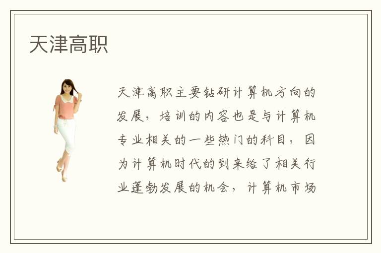 天津高職主要鉆研計算機方向的發(fā)展,培訓的內容也是與計算機專業(yè)相關的一些熱門的科目,因為計算機時代的到來給了相關行業(yè)蓬勃發(fā)展的機會,計算機市場的就業(yè)崗位比較多,學習這個專業(yè)的人也會有更多的機會擺脫就業(yè)困難。天津職業(yè)培訓學校專業(yè)嗎?天津職業(yè)學校培訓效果好不好?天津計算機培訓計算機培訓中心職業(yè)技術學校有專門的培訓導師細心講解。