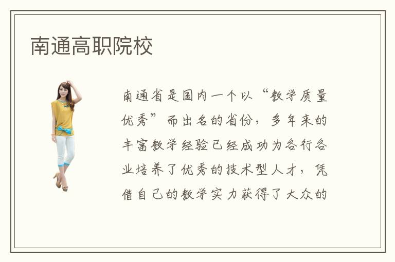 南通省是國(guó)內(nèi)一個(gè)以“教學(xué)質(zhì)量?jī)?yōu)秀”而出名的省份,多年來(lái)的豐富教學(xué)經(jīng)驗(yàn)已經(jīng)成功為各行各業(yè)培養(yǎng)了優(yōu)秀的技術(shù)型人才,憑借自己的教學(xué)實(shí)力獲得了大眾的肯定。隨著目前信息化趨勢(shì)的發(fā)展,計(jì)算機(jī)相關(guān)專業(yè)技術(shù)型人才的培養(yǎng)是各大高校的重點(diǎn),南通市作為南通省教學(xué)質(zhì)量最可靠的城市,在計(jì)算機(jī)相關(guān)專業(yè)技術(shù)人才的培養(yǎng)方面自然也是出色的。那么,南通高職院校的教學(xué)質(zhì)量怎么樣呢?