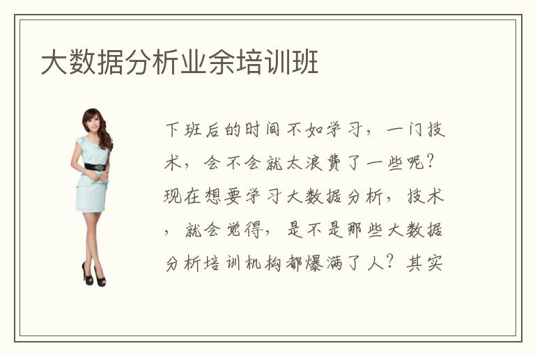 下班后的時間不如學(xué)習(xí),一門技術(shù),會不會就太浪費(fèi)了一些呢?現(xiàn)在想要學(xué)習(xí)大數(shù)據(jù)分析,技術(shù),就會覺得,是不是那些大數(shù)據(jù)分析培訓(xùn)機(jī)構(gòu)都爆滿了人?其實(shí)大數(shù)據(jù)分析,業(yè)余培訓(xùn)班,就是為了想要合理利用自己的下班后的時間的人員,而建立。在大數(shù)據(jù)分析業(yè)余培訓(xùn)班里面,可以輕松的,學(xué)習(xí)大數(shù)據(jù)分析技術(shù)。不用擔(dān)心大數(shù)據(jù)分析,業(yè)余培訓(xùn)班里面的人員會不會很多,自己會不會報不上名?因?yàn)楫?dāng)時據(jù)分析,業(yè)余培訓(xùn)班有很多個。無論你去哪一個大數(shù)據(jù)分析,業(yè)余培訓(xùn)班里面學(xué)習(xí)到的內(nèi)容,其實(shí)都是一樣的。都是專業(yè)的大數(shù)據(jù)分析方面的知識。所以說想要學(xué)習(xí)大數(shù)據(jù)分析技術(shù),任何時候都不會太晚。哪怕是現(xiàn)在想要學(xué)習(xí)了解,都可以去大數(shù)據(jù)分析,業(yè)余培訓(xùn)班里面學(xué)習(xí)。
