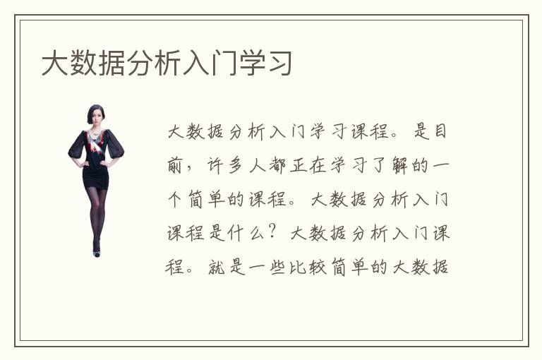 大數(shù)據(jù)分析入門學(xué)習(xí)課程。是目前,許多人都正在學(xué)習(xí)了解的一個簡單的課程。大數(shù)據(jù)分析入門課程是什么?大數(shù)據(jù)分析入門課程。就是一些比較簡單的大數(shù)據(jù)分析方面的知識。比較適合,沒有學(xué)習(xí)過大數(shù)據(jù)分析技術(shù)的人員,來進(jìn)行學(xué)習(xí)。大數(shù)據(jù)分析入門學(xué)習(xí)課程,可以給,這些沒有學(xué)習(xí)大數(shù)據(jù)分析技術(shù)的人,一個了解大數(shù)據(jù)分析技術(shù)的機(jī)會。從而更深入的學(xué)習(xí)大數(shù)據(jù)分析這門技術(shù)。大數(shù)據(jù)分析入門學(xué)習(xí)課程都是一些,比較專業(yè)的關(guān)于大數(shù)據(jù)分析技術(shù)的課程。大數(shù)據(jù)分析入門 學(xué)習(xí)課程??梢宰屧S多的學(xué)習(xí)大數(shù)據(jù)分析技術(shù)的,人員,更專業(yè)的學(xué)會大數(shù)據(jù)分析技術(shù)。大數(shù)據(jù)分析入門學(xué)習(xí)課程都比較多,簡單易懂。學(xué)習(xí)起來大數(shù)據(jù)分析入門學(xué)習(xí)課程非常的,輕松一些,并不吃力