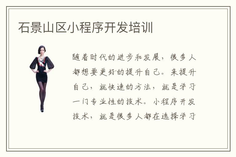 隨著時代的進步和發(fā)展,很多人都想要更好的提升自己。來提升自己,就快速的方法,就是學習一門專業(yè)性的技術。小程序開發(fā)技術,就是很多人都在選擇學習的一門專業(yè)技術。小程序開發(fā)技術專業(yè)性比較強的一門技術。學習起來,小程序開發(fā)技術并不是特別簡單,得選擇專業(yè)的地方去學習才可以。石景山區(qū)小程序開發(fā)培訓機構,這都是一些非常專業(yè)的培訓機構。石景山區(qū)小城市開發(fā)培訓機構里面的教師也都是專業(yè)性人才,所以在這里學習的話,可以學到非常多的專業(yè)性知識。很多想要學習小程序開發(fā)技術的,學員,都選擇到石景山區(qū)小程序開發(fā)培訓機構里面去學習。在石景山區(qū)小程序開發(fā)培訓機構里面,真的可以學到非常多的專業(yè)知識。有很多人想要學習小程序開發(fā)技術方面的專業(yè)知識,都選擇到石景山區(qū)小程序開發(fā)培訓機構里面去學習。