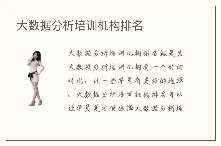 大數(shù)據(jù)分析培訓(xùn)機(jī)構(gòu)排名就是為大數(shù)據(jù)分析培訓(xùn)機(jī)構(gòu)有一個好的對比,讓一些學(xué)員有更好的選擇。大數(shù)據(jù)分析培訓(xùn)機(jī)構(gòu)排名可以讓學(xué)員更方便選擇大數(shù)據(jù)分析培訓(xùn)機(jī)構(gòu)。大數(shù)據(jù)分析培訓(xùn)機(jī)構(gòu)排名重要嗎?大數(shù)據(jù)分析培訓(xùn)機(jī)構(gòu)排名比較重要。學(xué)員們可以根據(jù)大數(shù)據(jù)分析培訓(xùn)機(jī)構(gòu),排名的前后來,選擇好的培訓(xùn)機(jī)構(gòu),學(xué)習(xí)大數(shù)據(jù)分析技術(shù)。選擇大數(shù)據(jù)分析培訓(xùn)機(jī)構(gòu)也比較的重要,不能小看。不能說隨隨便便選擇一個大數(shù)據(jù)分析培訓(xùn)機(jī)構(gòu)就去,學(xué)習(xí)。這樣是學(xué)不到大數(shù)據(jù)分析技術(shù)的。想要學(xué)好大數(shù)據(jù)分析技術(shù),就得看一下大數(shù)據(jù)分析培訓(xùn)機(jī)構(gòu)的排名怎么樣。選擇靠前的大數(shù)據(jù)分析培訓(xùn)機(jī)構(gòu)去學(xué)習(xí)大數(shù)據(jù)分析技術(shù),才是最正確的方法。大數(shù)據(jù)分析培訓(xùn)機(jī)構(gòu)排名確實(shí)很重要,對于一些人來說。