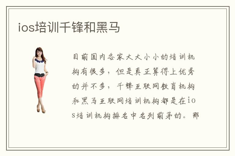 目前國內(nèi)各家大大小小的培訓(xùn)機(jī)構(gòu)有很多,但是真正算得上優(yōu)秀的并不多,千鋒互聯(lián)網(wǎng)教育機(jī)構(gòu)和黑馬互聯(lián)網(wǎng)培訓(xùn)機(jī)構(gòu)都是在ios培訓(xùn)機(jī)構(gòu)排名中名列前茅的。那么,ios培訓(xùn)千鋒和黑馬到底哪家培訓(xùn)機(jī)構(gòu)好呢?千鋒培訓(xùn)機(jī)構(gòu)和黑馬培訓(xùn)機(jī)構(gòu)都專注于培養(yǎng)國內(nèi)計(jì)算機(jī)人才,開設(shè)四個(gè)月左右專業(yè)性的課程,權(quán)威教師團(tuán)隊(duì)授課指導(dǎo),就業(yè)率高。大家如果在糾結(jié)選擇其中哪家培訓(xùn)機(jī)構(gòu),可以去實(shí)地進(jìn)行試聽試學(xué)考察哦!
