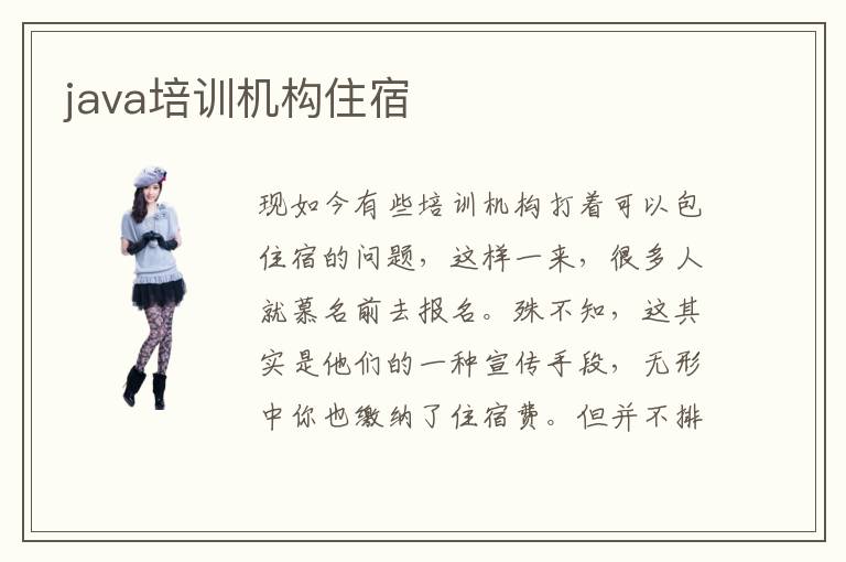 現(xiàn)如今有些培訓(xùn)機(jī)構(gòu)打著可以包住宿的問題,這樣一來,很多人就慕名前去報(bào)名。殊不知,這其實(shí)是他們的一種宣傳手段,無(wú)形中你也繳納了住宿費(fèi)。但并不排除有的java培訓(xùn)機(jī)構(gòu)真的可以住宿的,這就需要大家擦亮眼鏡,謹(jǐn)慎小心一些。我想,關(guān)于java培訓(xùn)機(jī)構(gòu)管不管住宿這個(gè)問題,大家要杜絕虛假?gòu)V告,要查看官網(wǎng),要撥打電話進(jìn)行咨詢,以免上當(dāng)受騙。