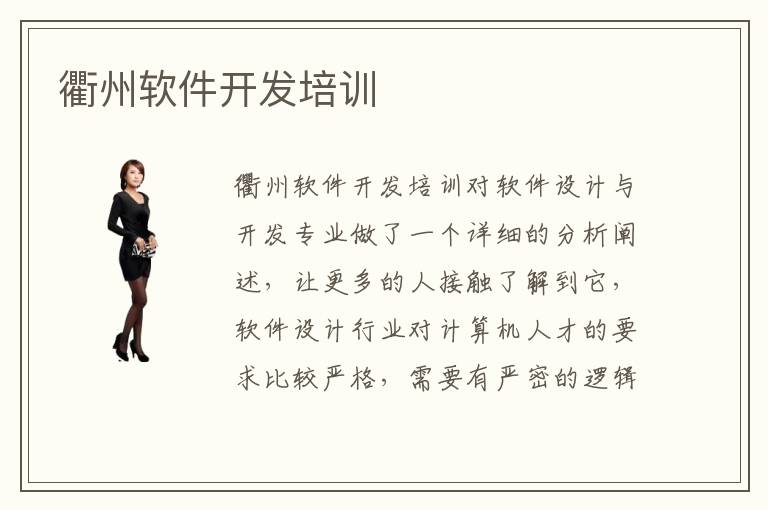 衢州軟件開發(fā)培訓(xùn)對(duì)軟件設(shè)計(jì)與開發(fā)專業(yè)做了一個(gè)詳細(xì)的分析闡述,讓更多的人接觸了解到它,軟件設(shè)計(jì)行業(yè)對(duì)計(jì)算機(jī)人才的要求比較嚴(yán)格,需要有嚴(yán)密的邏輯思維和敏銳的洞察力,所以衢州軟件開發(fā)與設(shè)計(jì)專業(yè)難度系數(shù)也會(huì)比較大,學(xué)生們可以把學(xué)習(xí)軟件設(shè)計(jì)專業(yè)作為一個(gè)自我突破項(xiàng)目。衢州軟件設(shè)計(jì)培訓(xùn)設(shè)計(jì)培訓(xùn)學(xué)校好嗎?衢州計(jì)算機(jī)軟件培訓(xùn)機(jī)構(gòu)好不好呢?