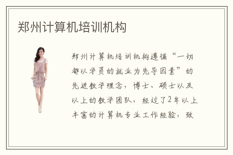 鄭州計算機培訓計算機培訓機構(gòu)遵循“一切都以學員的就業(yè)為先導因素”的先進教學理念,博士、碩士以及以上的教學團隊,經(jīng)過了2年以上豐富的計算機專業(yè)工作經(jīng)驗,致力于打造一支精英計算機專業(yè)授課團隊。針對計算機基礎的不同,采用多種教學方式因材施教,開設計算機基礎培訓班以及計算機提升培訓班,用更快更好更適合自己學習的方法,高效率的完成計算機專業(yè)的學習。